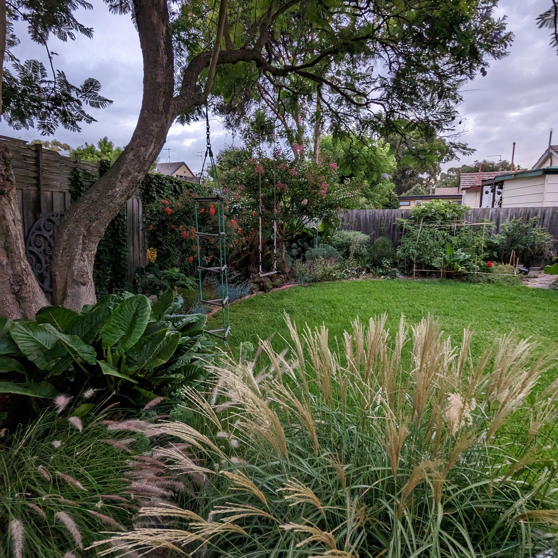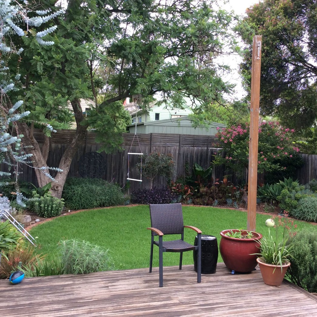 When we moved into the house all that was in the back yard was a Hills Hoist, a shed and a beautiful, mature Jacaranda tree. This was the ideal canvas to create a garden oasis for the family to play, potter and relax in.