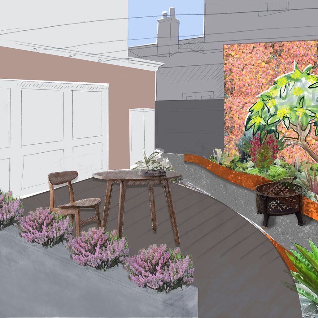 The garden has had the hardscape structural elements and garden beds installed. The owner has planted out the beds and continues to play in and develop the planting palette.