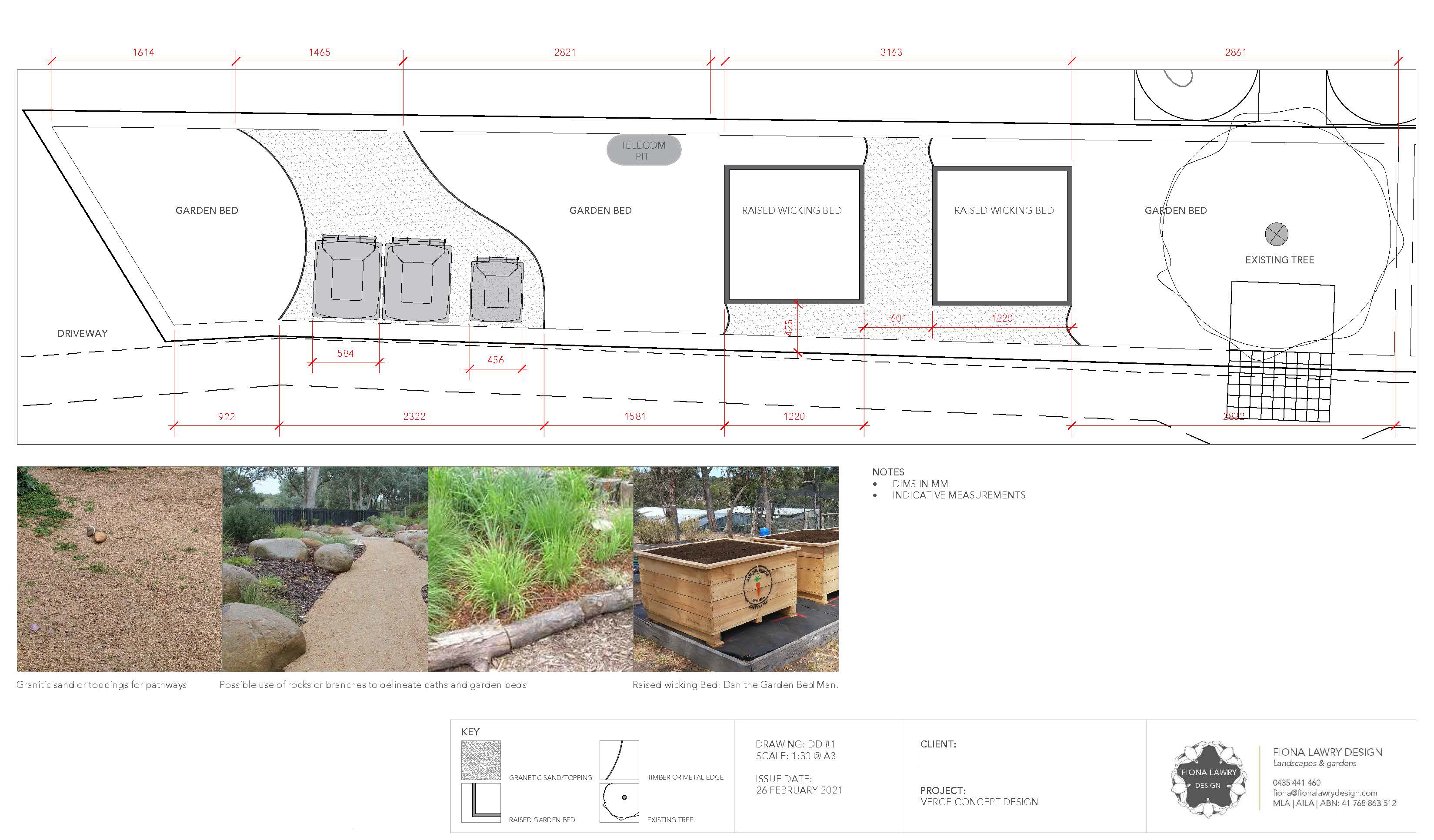 his is a small verge garden in a new housing development. The client wanted to create a small verge garden in line with council regulations. She wanted to minimise lawn mowing and create a space to grow and share food with her neighbourhood community.